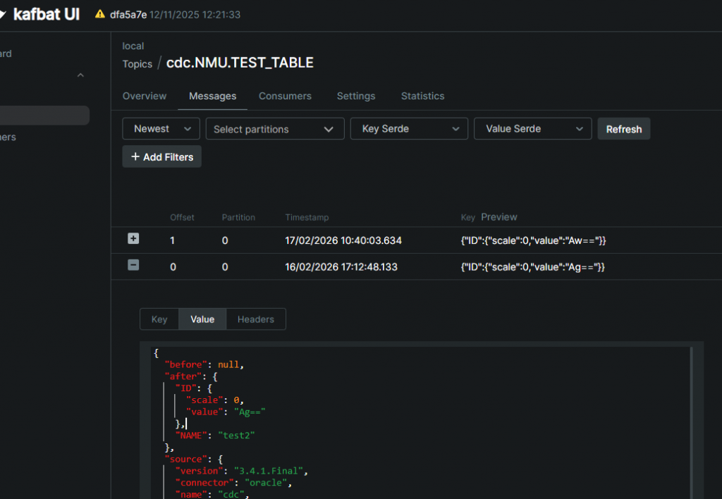 2026-02-17T09:40:15,360 INFO || WorkerSourceTask{id=oracle-cdc-noncdb-0} Committing offsets for 1 acknowledged messages [org.apache.kafka.connect.runtime.WorkerSourceTask]